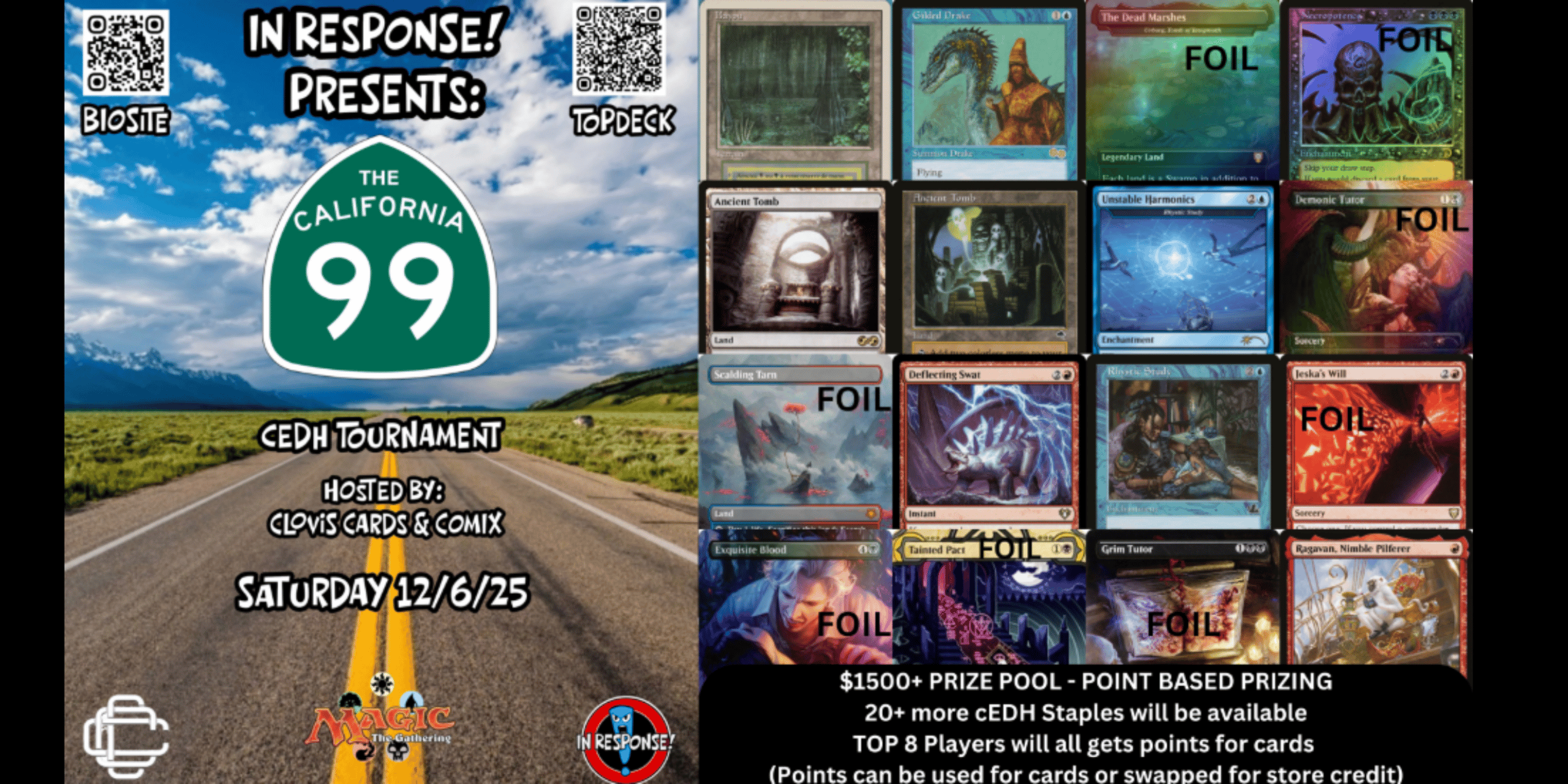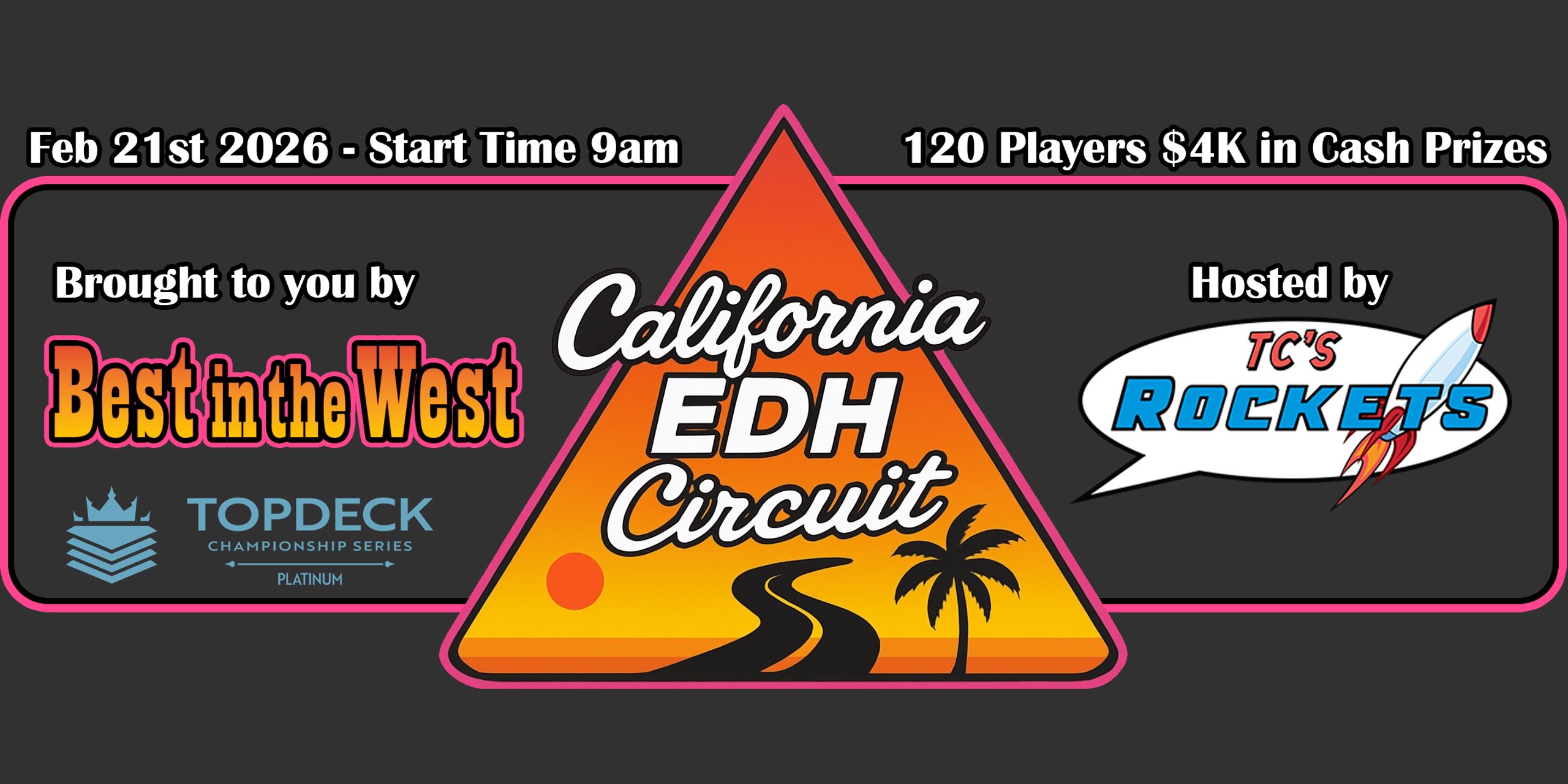 Points contribute to regional and national rankings and are visible on the Topdeck.gg Leaderboard. Find more information about point breakdown on the website here: https://californiaedhcircuit.com/#